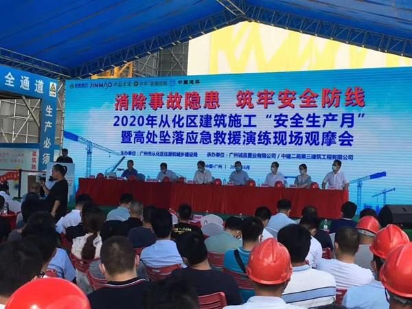 近日,騰暉科技受邀參加廣州市從化區2020年“安全生產月”暨高處墜落應急救援演練現場觀摩交流會,此次觀摩會在中建二局第三建筑工程有限公司華南分公司從化四季花城項目舉行。