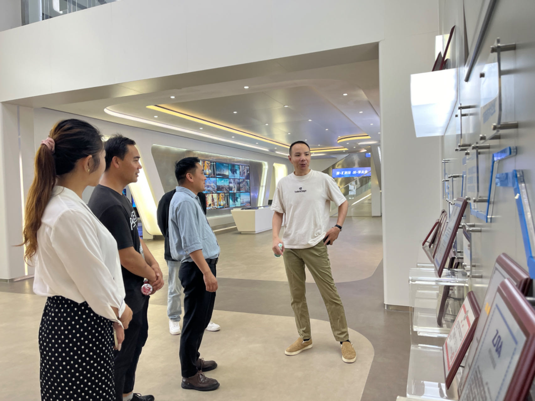 近日,深圳市龍華區工業和信息化局局長譚岱一行領導在銘泰集團董事長林永潮的陪同下蒞臨騰暉科技視察參觀,并就大力助推地方經濟發展做進一步的深入交流。